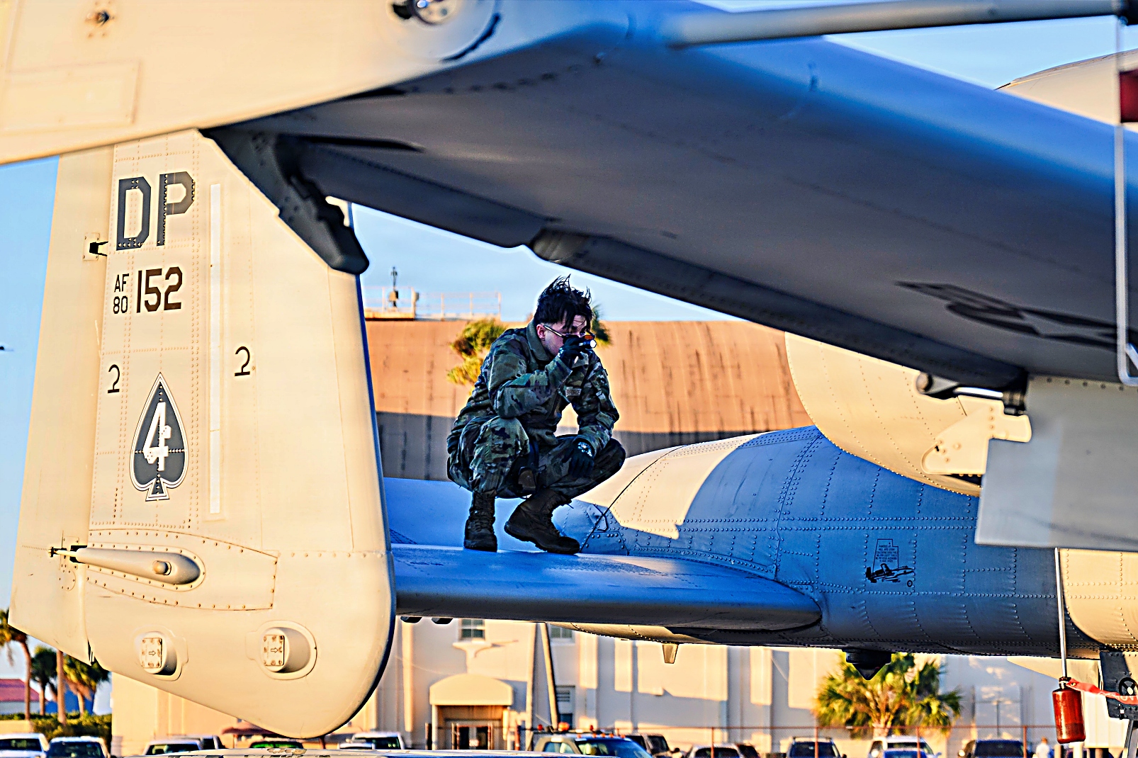 2026년 2월 6일, 플로리다주 MacDill 공군기지에서 제442전투비행단 소속 A-10 Thunderbolt II 공격기가 근접항공지원 훈련을 지원하기 위해 주기되어 출격준비를 하고 있다.