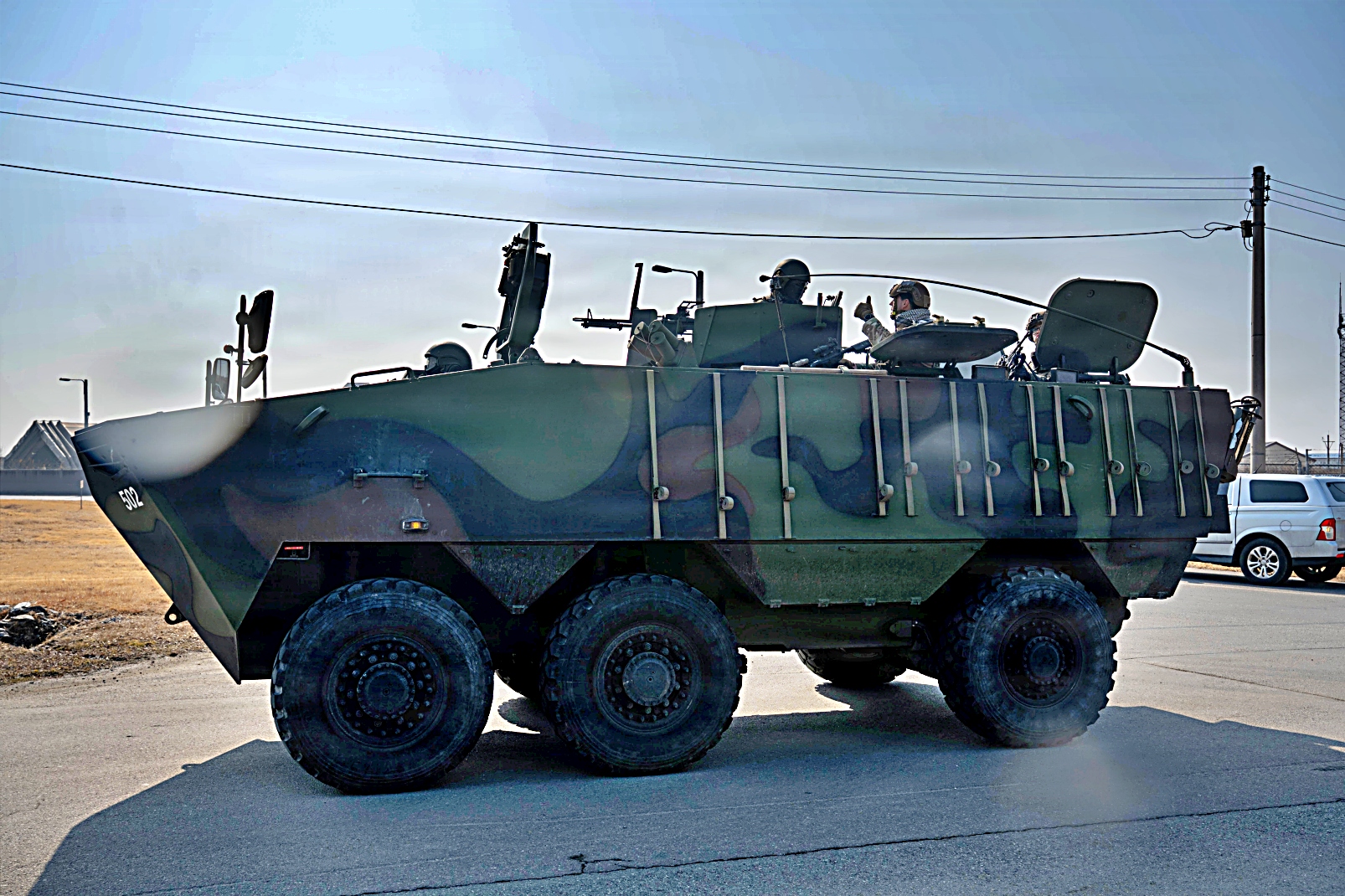 2026년 2월 12일, 주한 미공군 군산기지에서 실시된 Beverly Sentinel 26-2 훈련 중, 미 공군 제8경비대대와 한국공군 38전대 기지방호대대가 합동으로 경호 작전을 수행하며 K806 장갑차를 이용하고 있다.