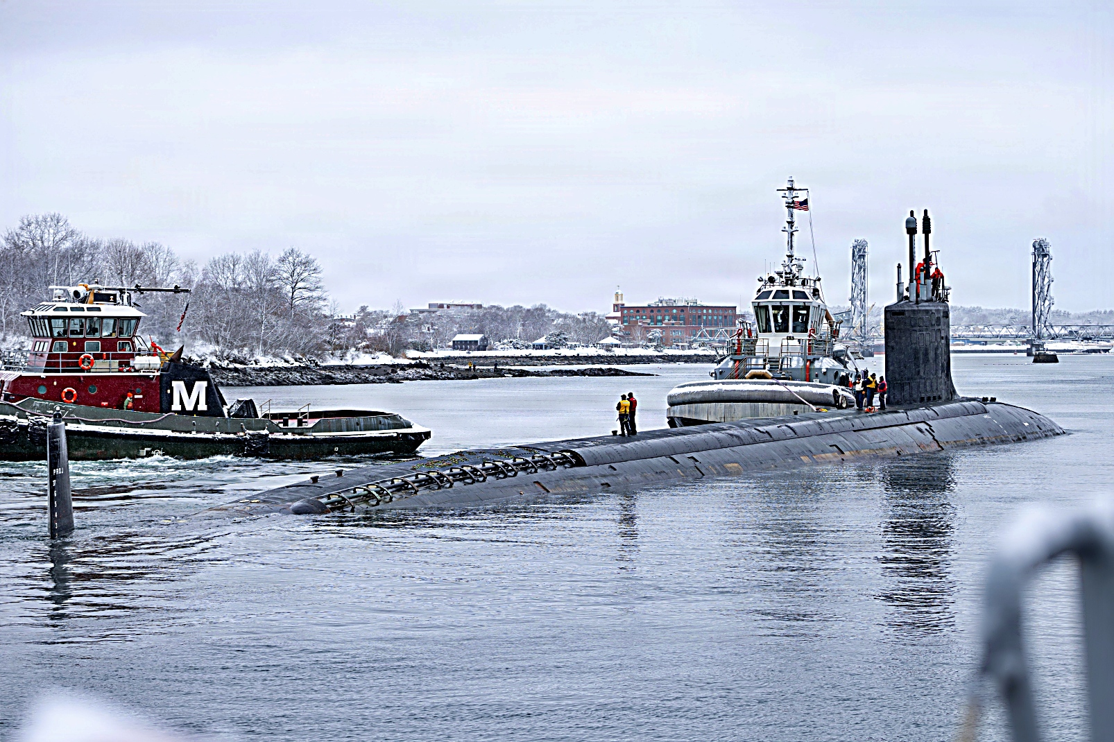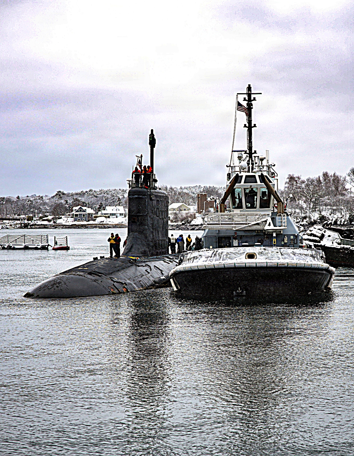 Virginia급 핵추진 고속 공격 잠수함 2척 New London 잠수함 기지 입항