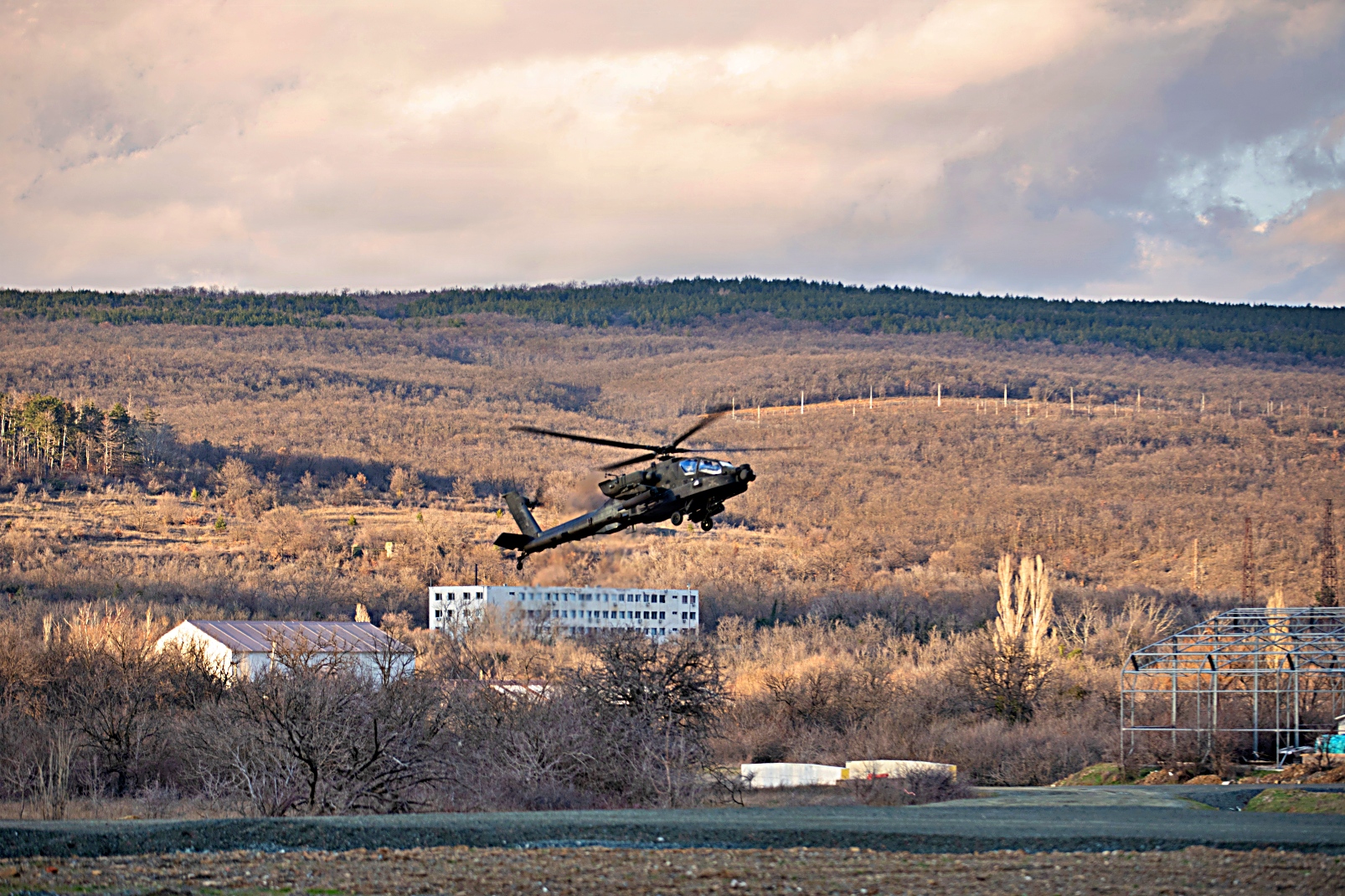 미 육군 제3보병사단 제3전투항공여단 제3항공연대 제4공격헬기대대 소속 장병들이 2026년 2월 24일과 25일 불가리아 Novo Selo 훈련장에서 공중 사격 훈련을 실시하고 있다. 제3보병사단의 이번 공중 사격 훈련은 Task Force Brawlers 소속 모든 항공 승무원의 전투력과 숙련도를 향상시키는 동시에 나토 동부 전선의 전투 준비 태세와 실전 능력을 강화하는 데 기여했다.