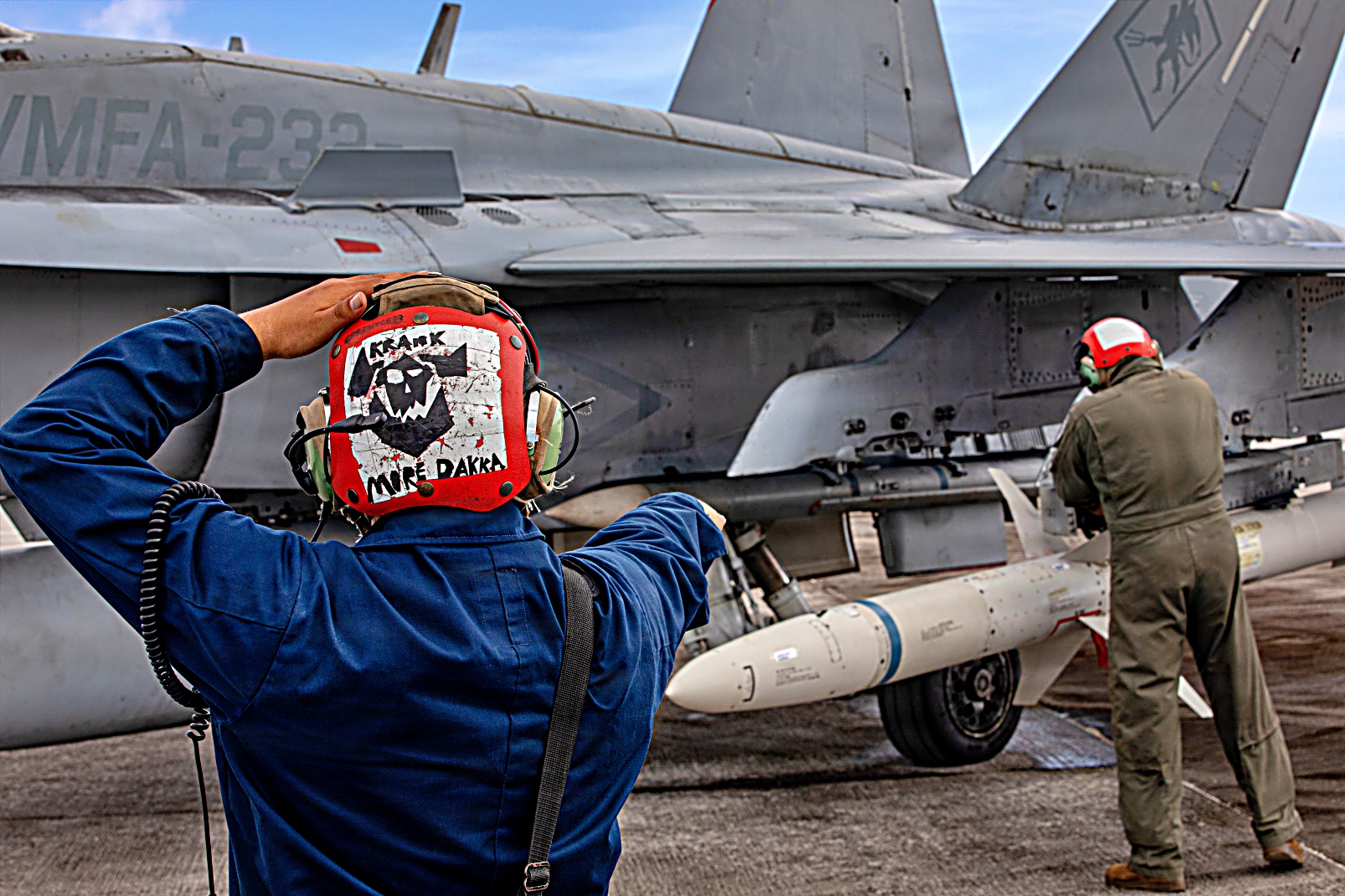 2026년 2월 5일, 괌 Andersen 공군기지에서 열린 항공 훈련 재배치 ( Aviation Training Relocation) 프로그램의 일환으로, 제1해병항공단 제12해병항공전단(MAG-12) 소속 VMFA-232 해병전투비행대대의 F/A-18C/D Hornet 전폭기가 비행작전을 수행하고 있다. MAG-12 소속 해병대원들은 원정 작전, 전투기 통합, 공대지 무기 투하 능력 향상을 위해 괌에서 훈련을 받았다.