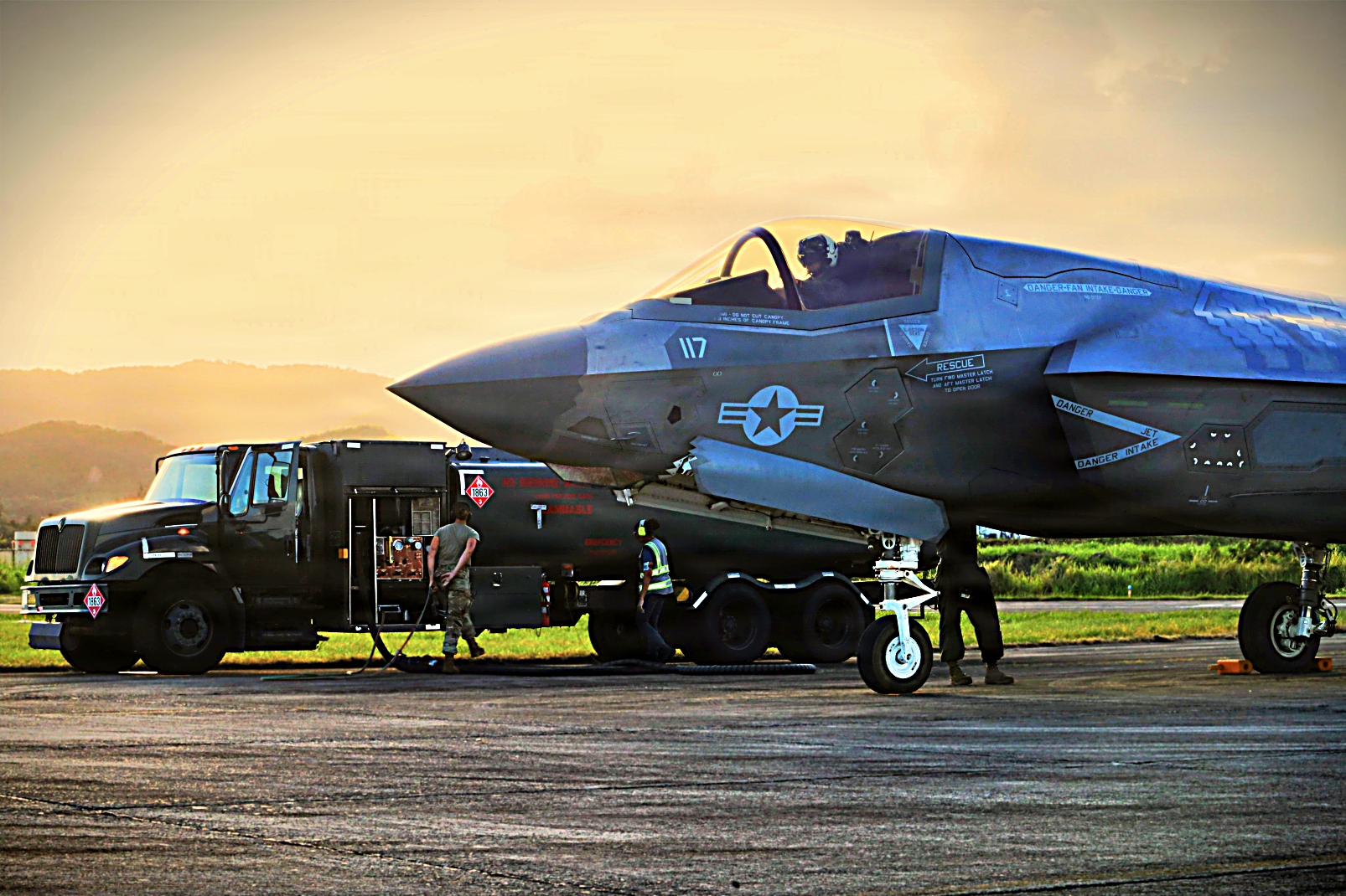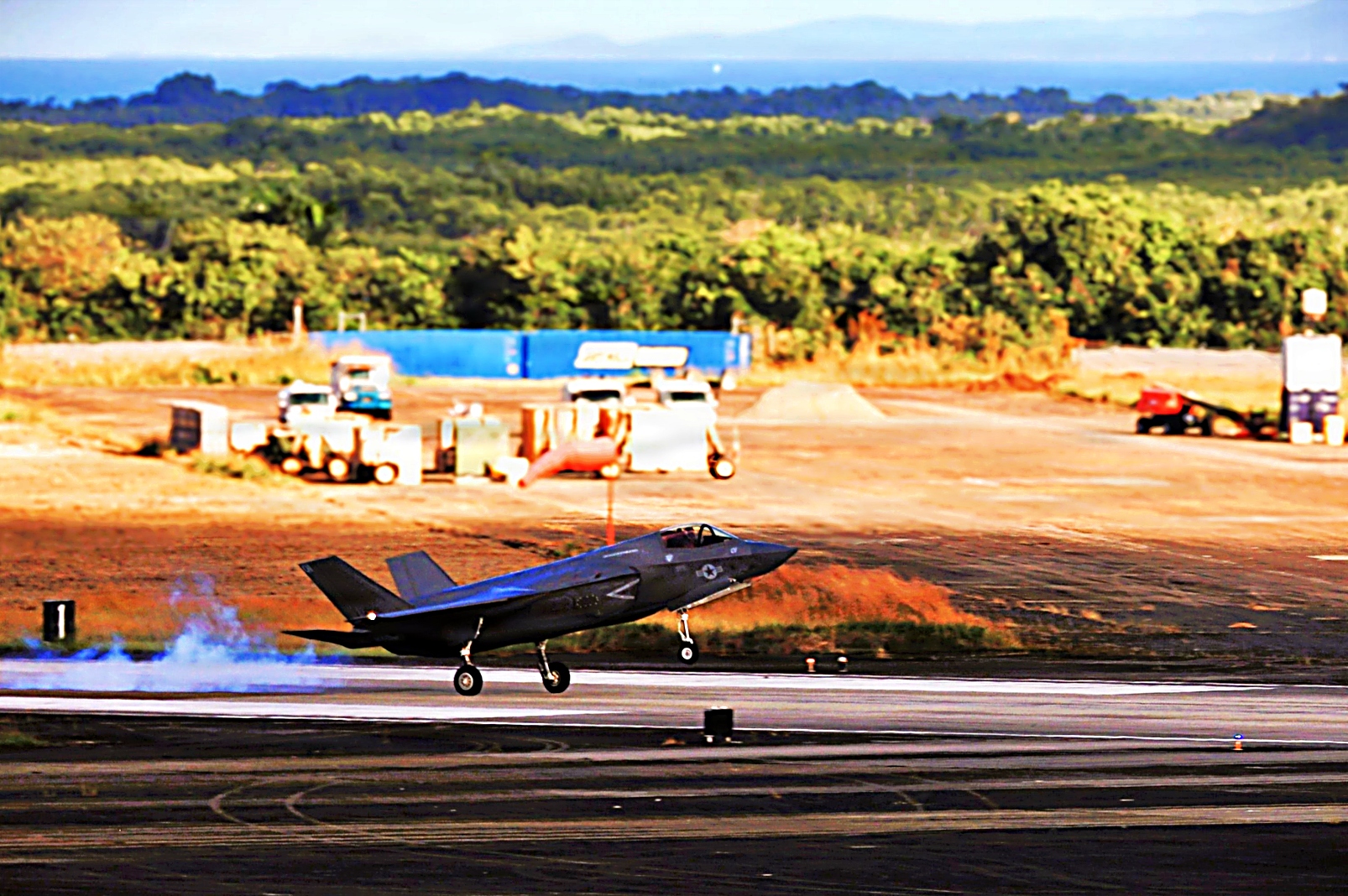 2026년 2월 23일, 푸에르토리코 Ceiba의 Jose Aponte de la Torre 공항에 배치된 미 해병대 남부사령부 배속 VMFA-225 전투비행대대의 F-35B Lightning II 공격기와 미 해병대 제22 특수작전가능 해병원정군 (22nd Marine Expeditionary Unit, Special Operations Capable)에 배속된 VMM-263 중형 틸트로터 비행대대 소속 AV-8B Harrier II 공격기들이 카리브해상의 마약운반선과 그림자선단의 유조선 및 베네수엘라의 테러 등을 감시하고 저지하기 위한 임무비행을 위해 출격하고 있다.