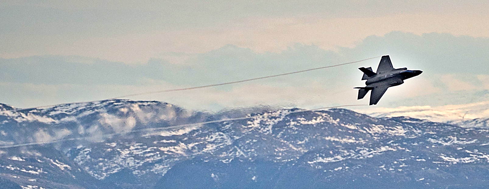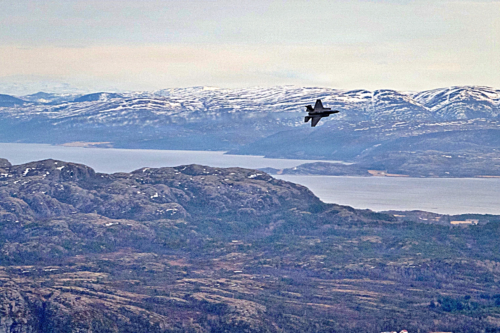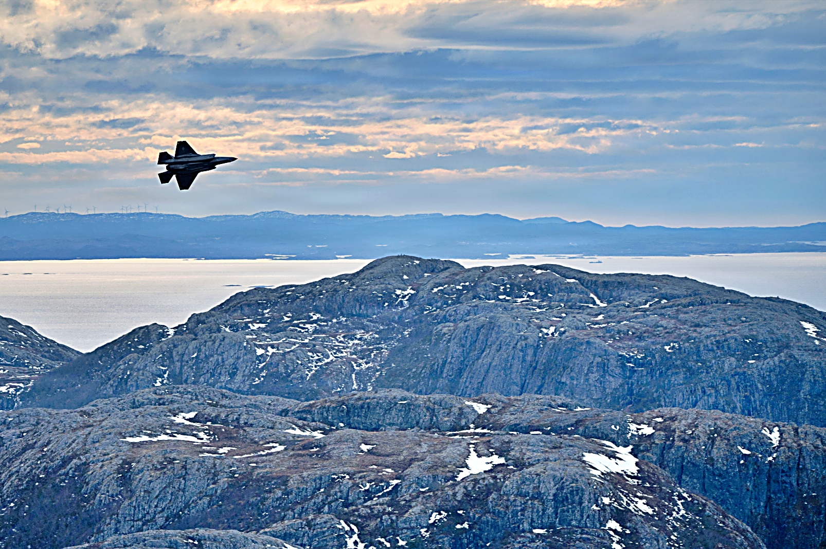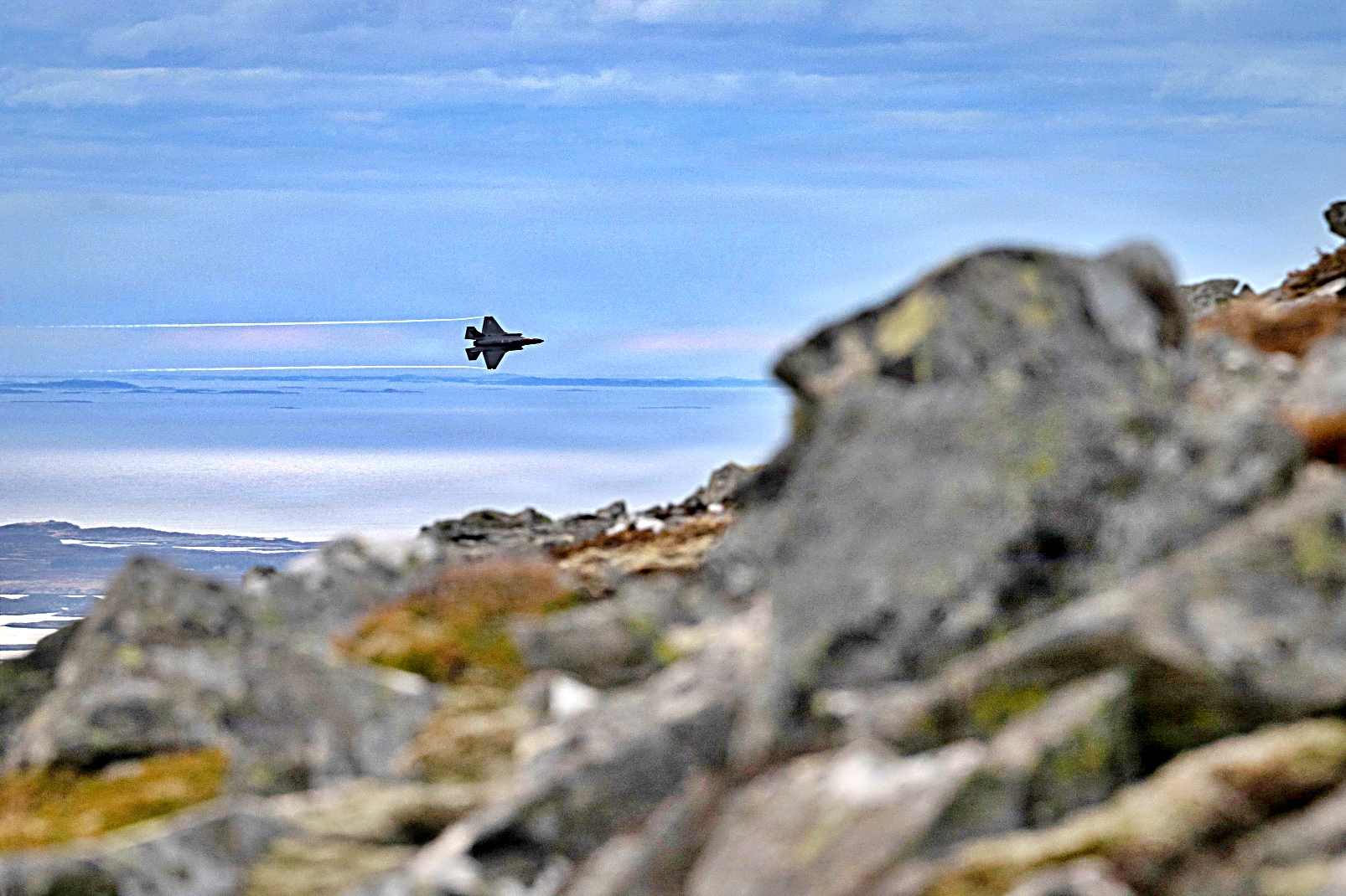2026년 3월 17일, 노르웨이 Kopparen산 상공에서 실시된 Cold Response 26 훈련에 참가중인 미 공군 제48전투비행단과 노르웨이 왕립 공군 제132전투비행단 소속 소속 F-35A Lightning II 공격기가 저고도 작전을 수행하고 있다. 제48전투비행단의 이번 훈련 참가는 나토 북부 전선 방어에 있어 동맹국들을 지원하고, 오랜 파트너십을 기반으로 공동 대비태세를 강화하겠다는 미국의 의지를 보여주는 것이다.