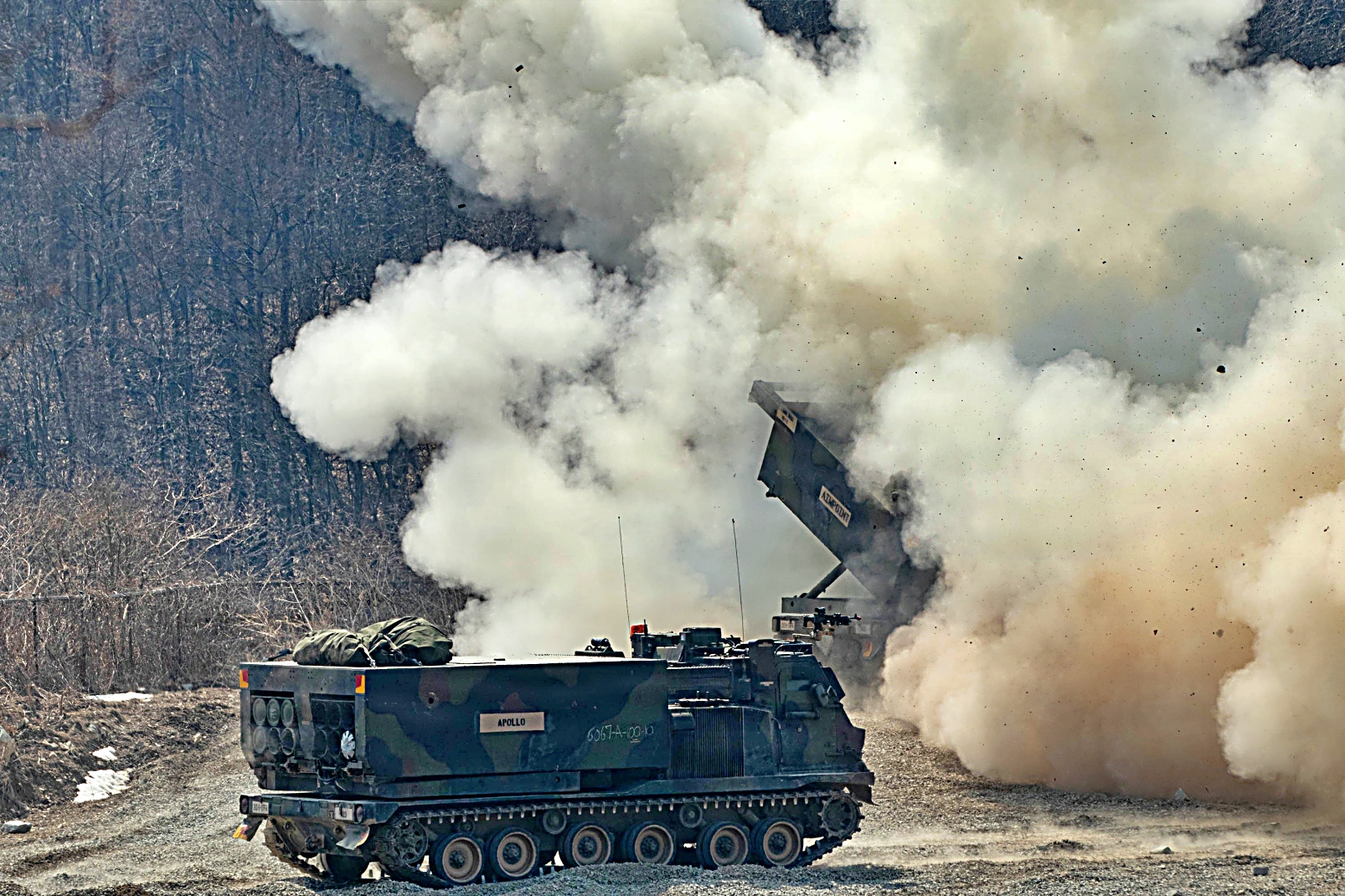 주한 미 육군 제210 야전포병여단 제37야전포병연대 제6대대 예하 Apocalypse 포대는 3월 16일 경기도 포천의 Rocket Valley 실사격훈련장에서 한미연합 Freedom Shield 2026 훈련의 일환으로 M270A1 다연장로켓