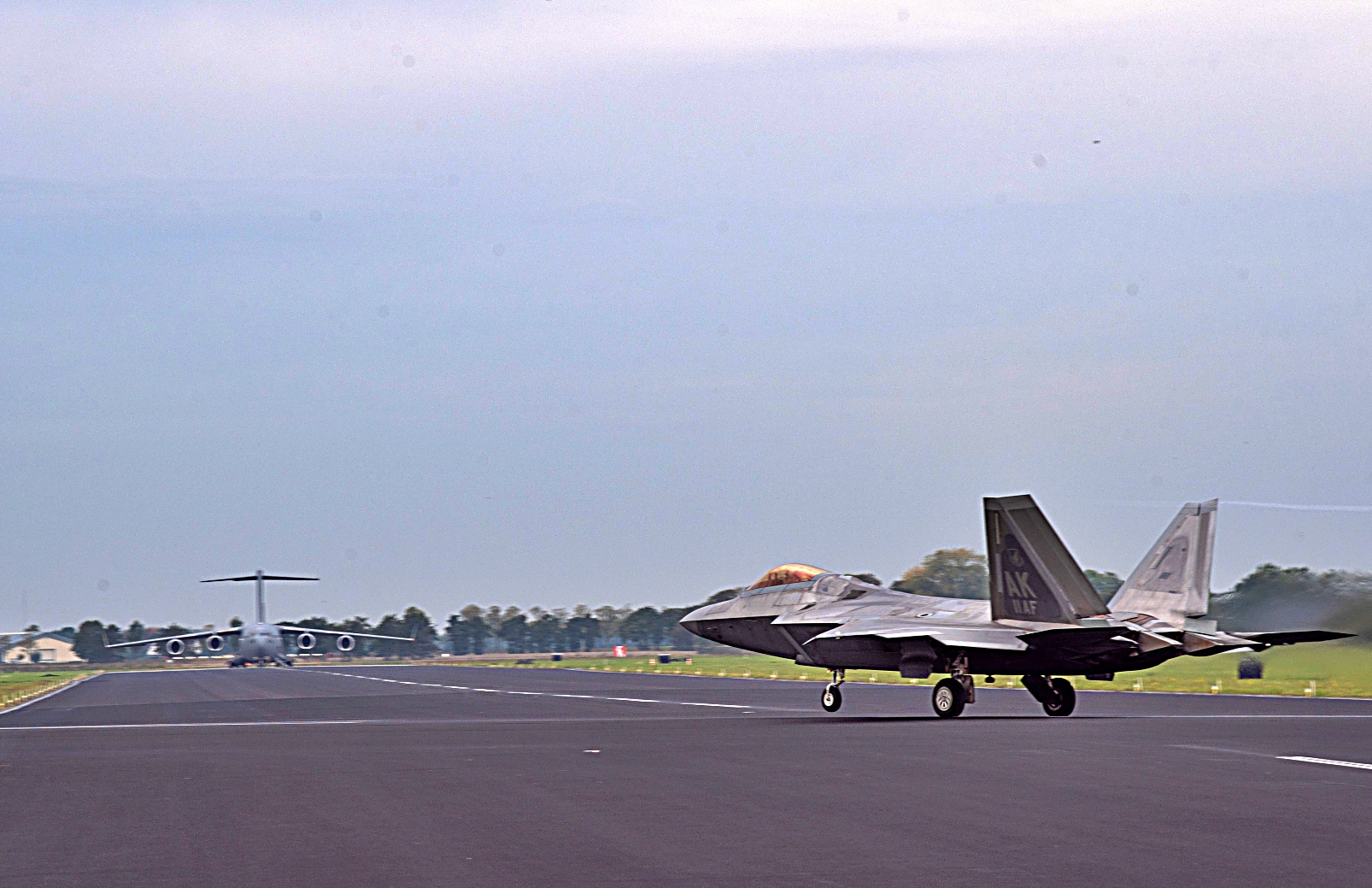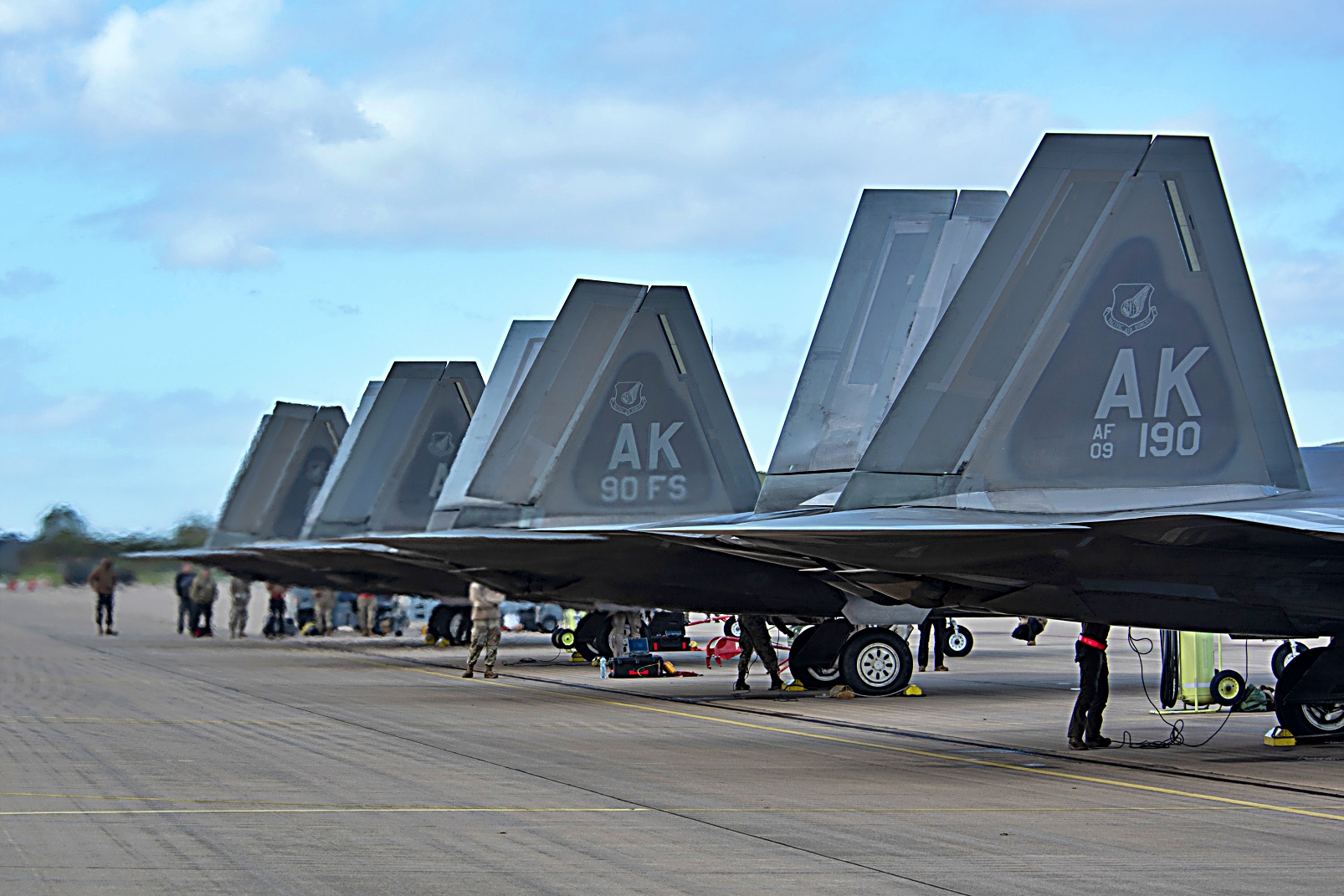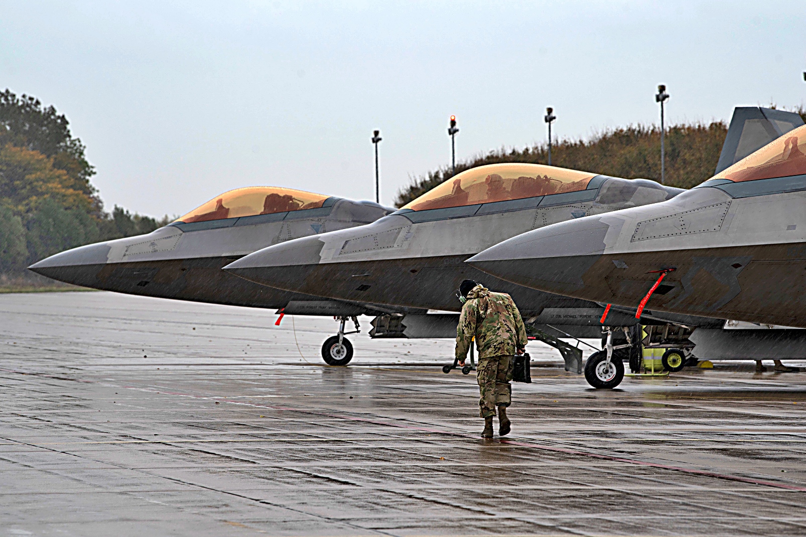 2022년 10월 미 공군 제90원정전투비행대대 소속 F-22 Raptor 전투기가 네덜란드 Leeuwarden 공군기지에서 네덜란드 왕립 공군과 통합 훈련을 실시하는 모습들이다.