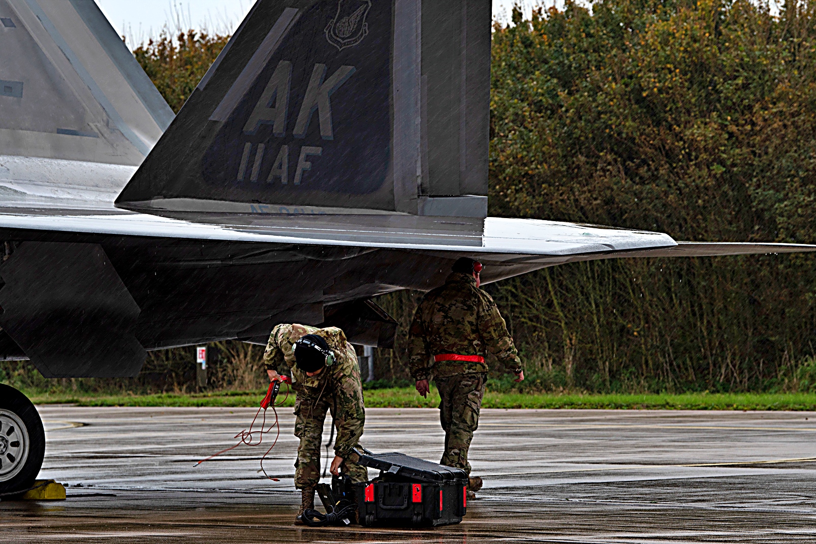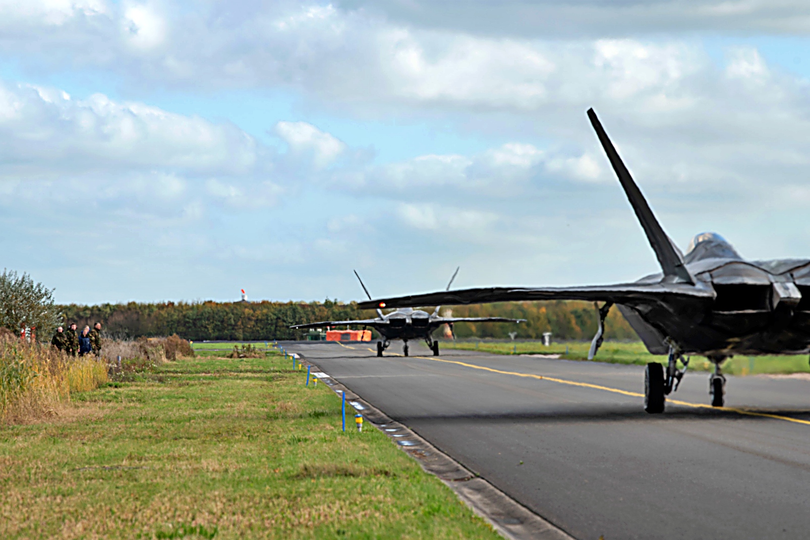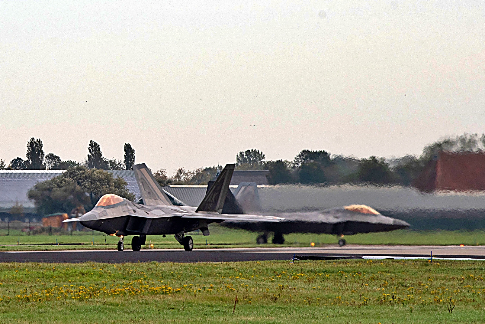 2022년 10월 17일, 네덜란드 Leeuwarden 공군기지에서 네덜란드 왕립 공군 소속 F-35A 공격기와 미 공군 제90원정전투비행대대 소속 F-22 Raptor 전투기가 통합 훈련 비행을 실시했다.