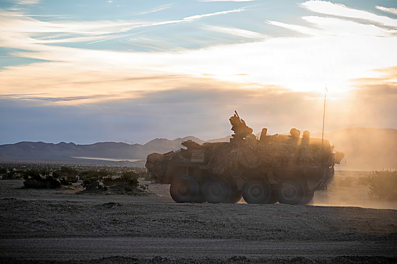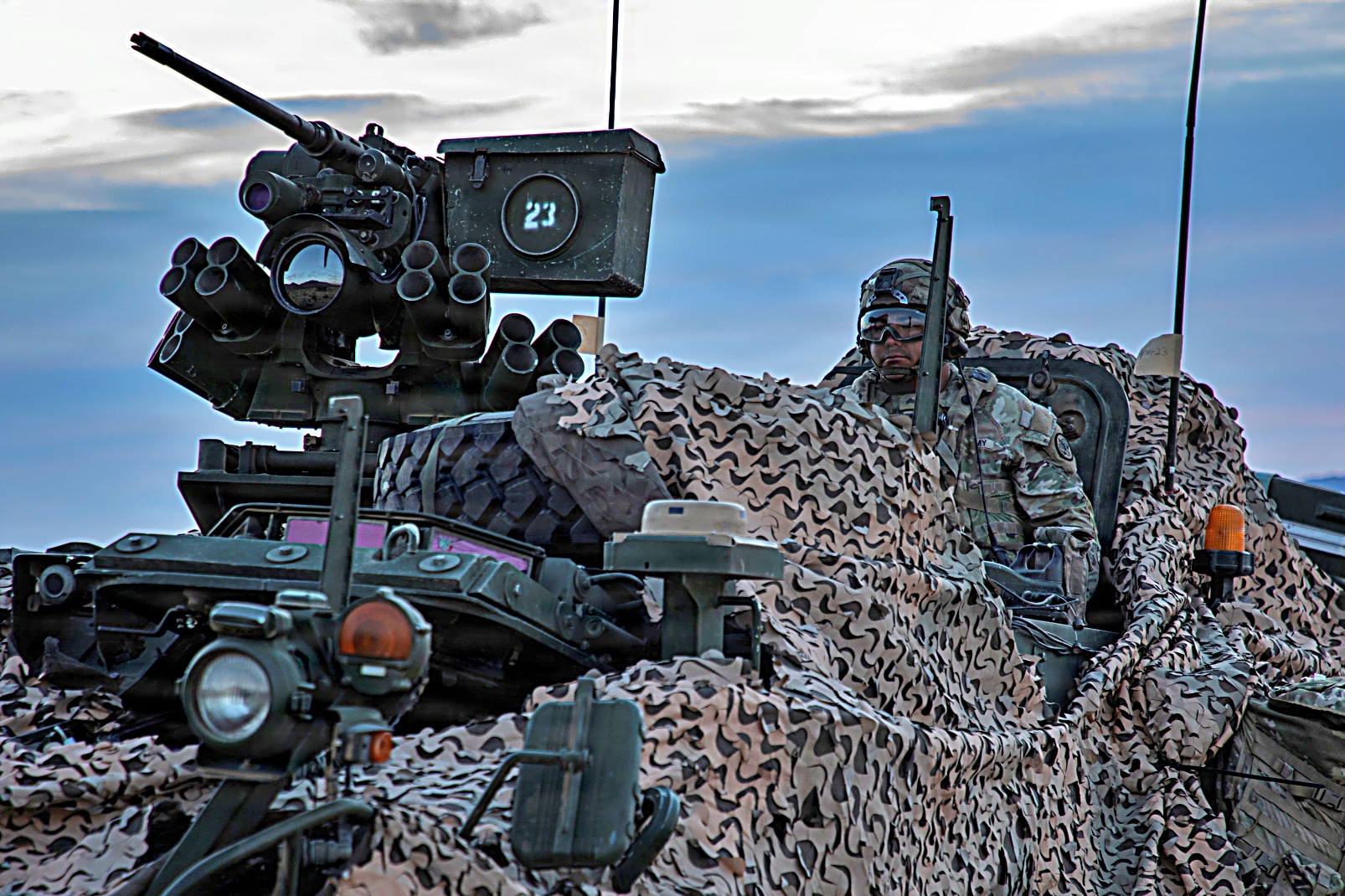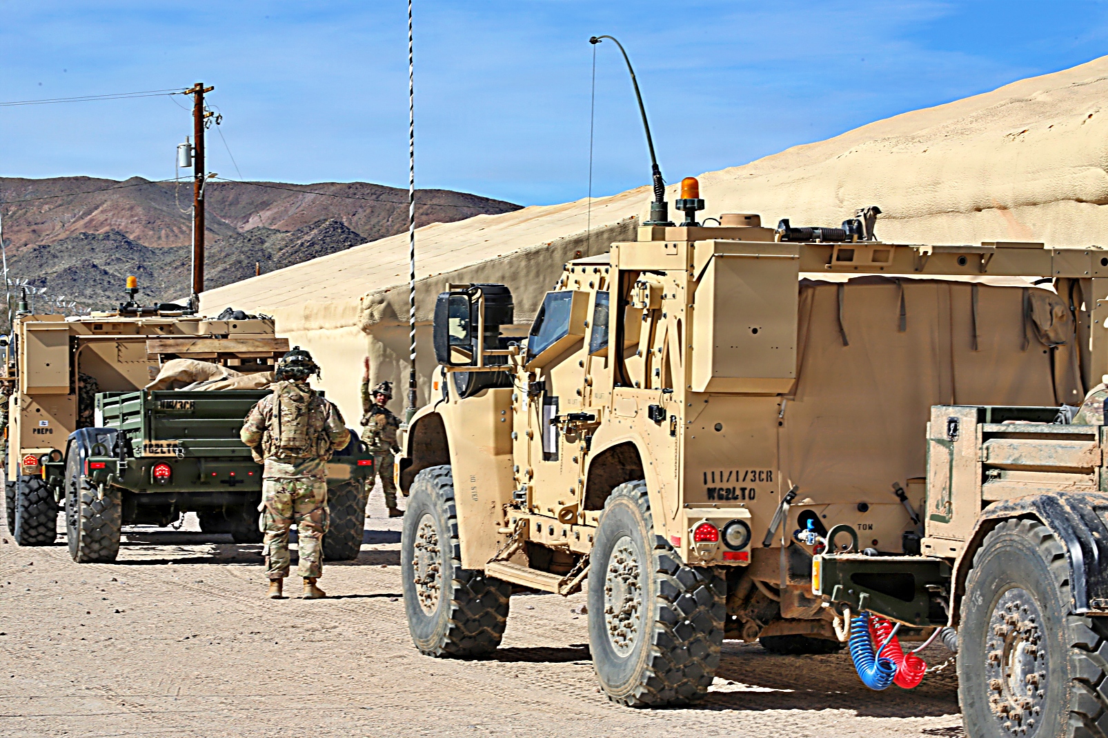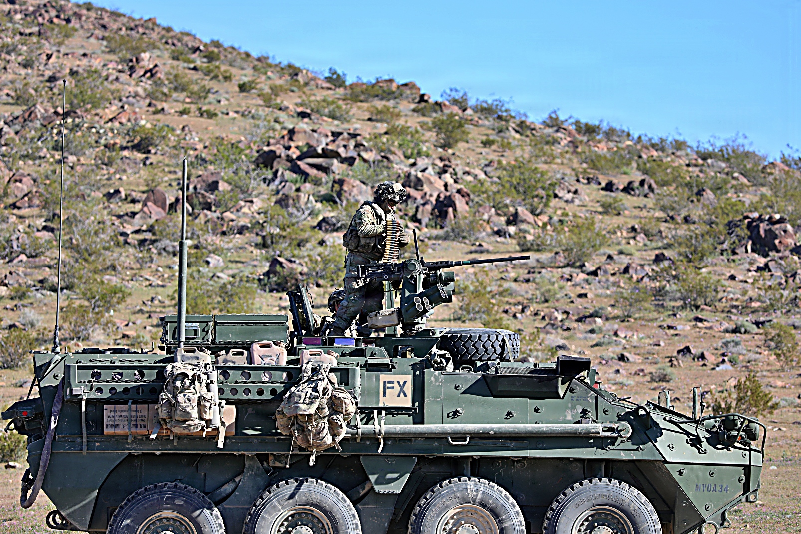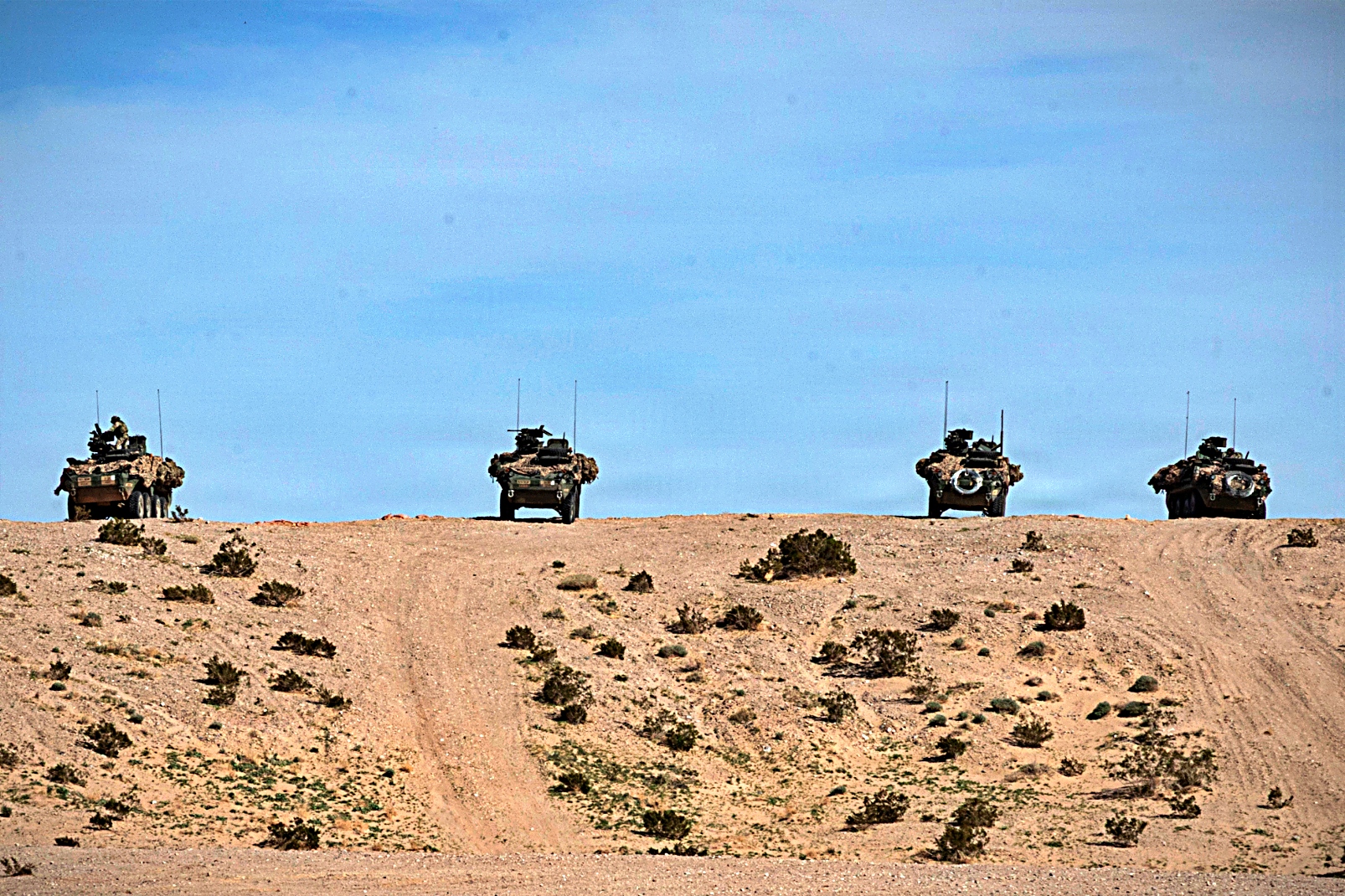 2026년 2월 26일부터 3월 5일사이 캘리포니아주 Fort Irwin 국립훈련센터에서 실시된 Rotation 26-05 훈련 중, 미 육군 제1기병사단 제3기병연대 제3대대 소속 병사들이 Stryker 장갑차를 이용한 다양한 훈련을 실시했다.