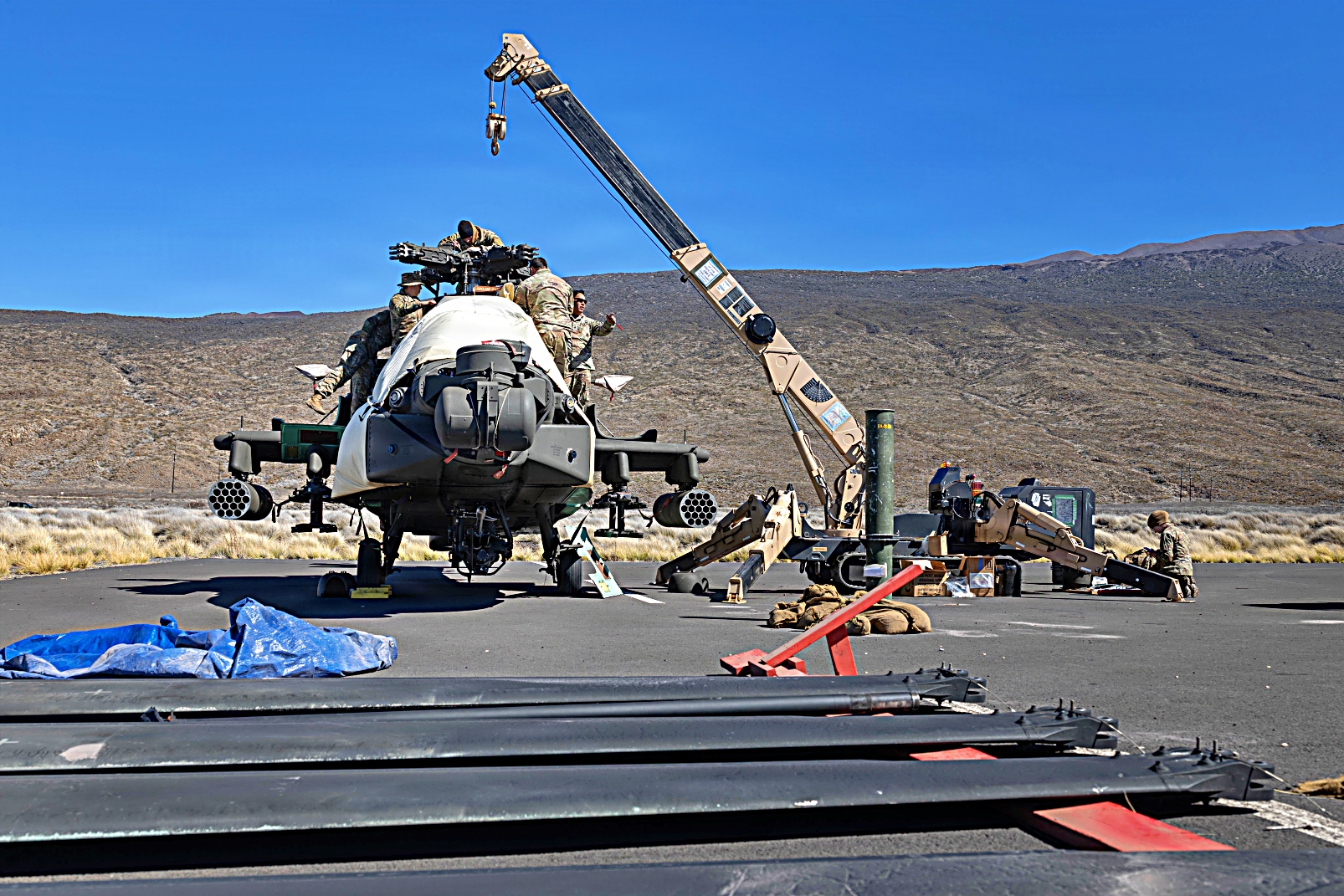 2026년 2월 2일부터 25일까지 하와이 Pohakuloa 훈련장에서,미 육군 제25전투항공여단 제6기병연대 "Sabers" 혹은 ("Lightning Horse") 예하의 제2대대 소속 AH-64 Apache 공격 헬리콥터 조종사들이 무기 체계 조종사 자격 인증을 위한 공중 사격 훈련 중 AH-64 무장/전기/항공전자 시스템 정비병들이 전방 무장 및 급유 지점(FARP)에서 AH-64 아파치 헬기에 무기를 장착하고 정비병들이 주야간 AH-64 헬리콥터의 로터 교환과 엔진 정비 등을 실시했다.