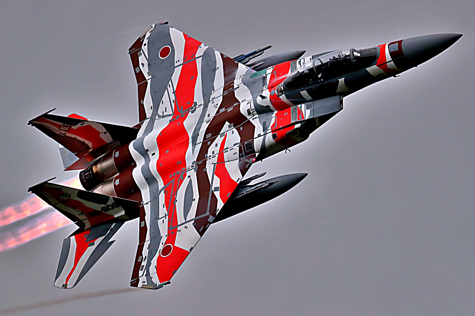 일본 항공자위대의 교도비행대, 즉 가상적기로 운용하는 가상적기 F-15J/DJ 전투기는 단일 표준 도색을 사용하지 않고, 흰색, 황토색, 갈색, 검정색 또는 다양한 파란색과 회색 계열 등 3~4가지 색상을 조합한 독특하고 복잡한 다색 위장 패턴을 특징으로 한다.