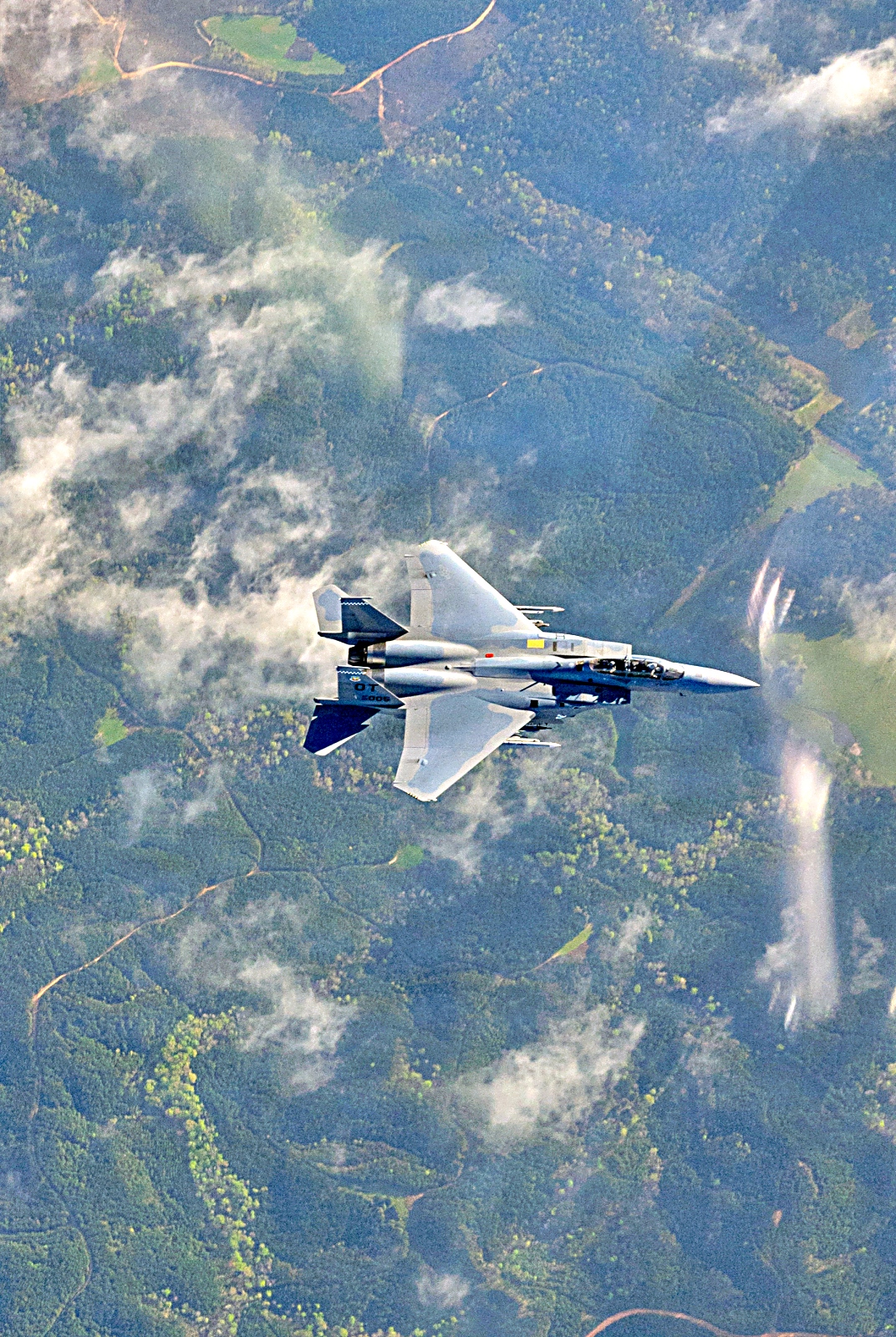 미국 플로리다주 Eglin 공군기지에 배치된 미 공군 F-15EX Eagle II 전투기가 2026년 3월 23일 미국 남동부 상공에서 훈련 비행을 하고 있다. 제96시험비행단과 제53비행단은 차세대 생존성, 레이더, 센서 및 네트워크 기능 등을 포함한 F-15EX Eagle II 플랫폼의 개발 및 작전 시험을 수행하고 있다.
