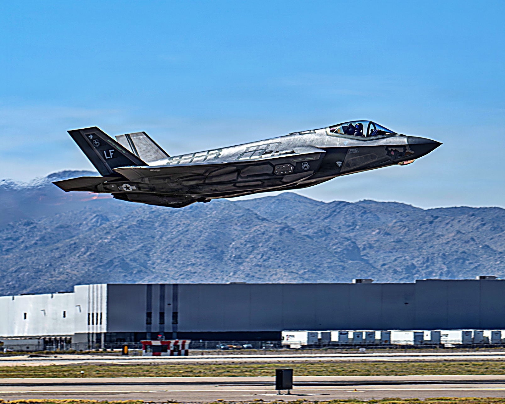 미 공군 F-35A Demonstration Team 조종사인 Sean “Rambo” Loughlin 소령이 2026년 3월 21일 애리조나주 Luke 공군기지에서 열린 Luke Days Airshow에서 F-35A의 공중 기동을 선보이고 있다. 이 팀은 미 공군의 최첨단 5세대 전투기와 공군 조종사들의 위력과 역량을 선보이기 위해 전 세계를 순회한다.