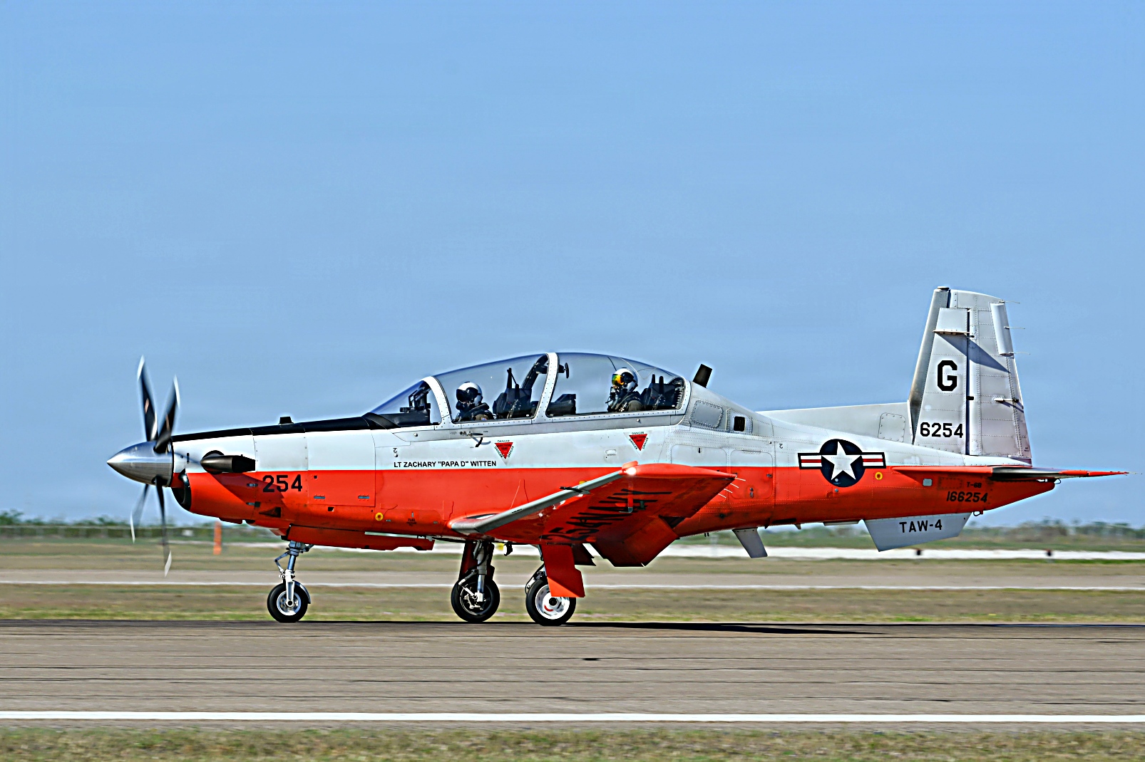 2026년 3월 19일, Corpus Christi 해군 항공기지에서 TW-4 훈련비행단 소속 T-54A Marlin II, T-44C Pegasus 및 T-6B Texan II 훈련기들이 훈련 비행을 수행하고 있다. 해군항공훈련사령부(NAATC)는 경쟁, 위기, 그리고 분쟁에서 승리할 수 있는 최고 수준의 해군 조종사를 양성하고 멘토링한다.