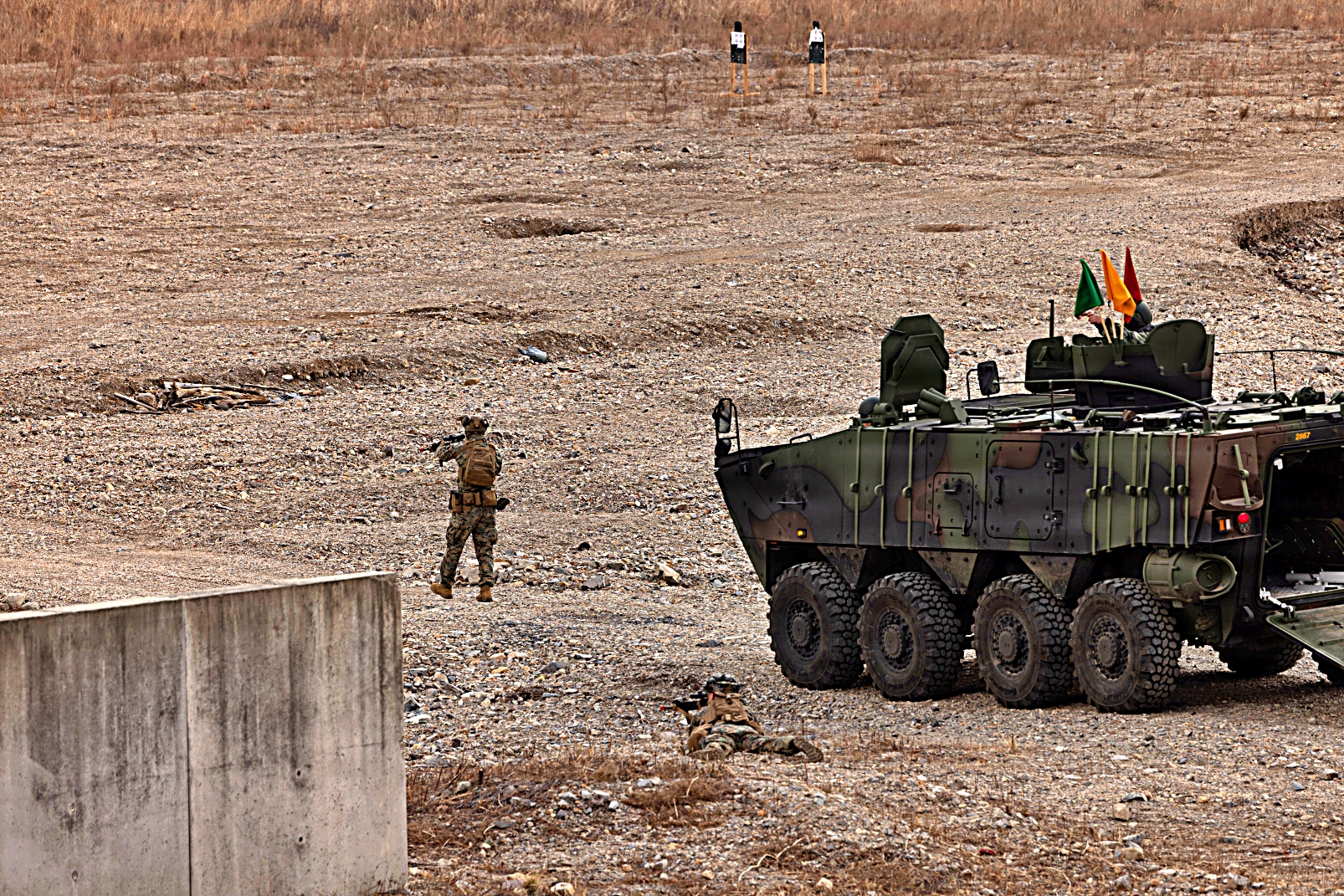 2026년 3월 12일, 대한민국 포항 수성리에서 실시된 한미교류프로그램(KMEP) 26.1 훈련 중, 미 해병대 제12연대 제12연대 소속 미 해병대원들과 대한민국 해병대원들이 K808 백호 장갑차를 이용 합동 전술 기동 훈련을 실시했다.