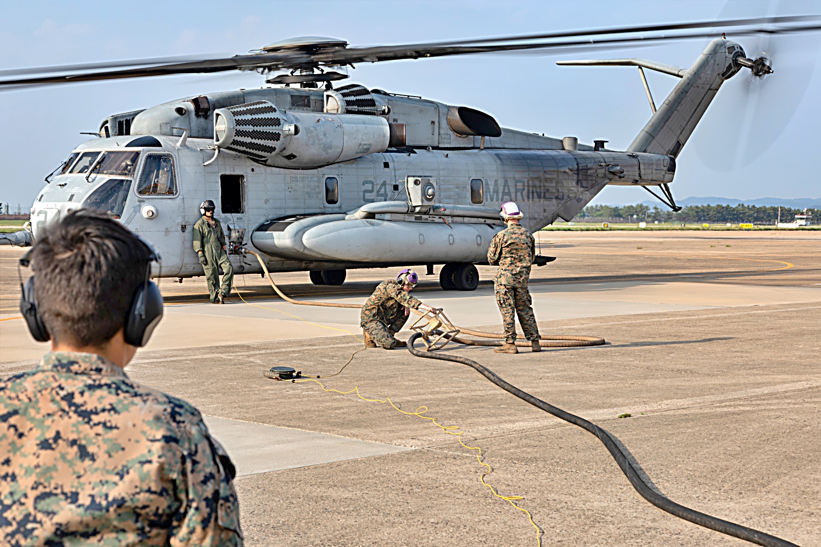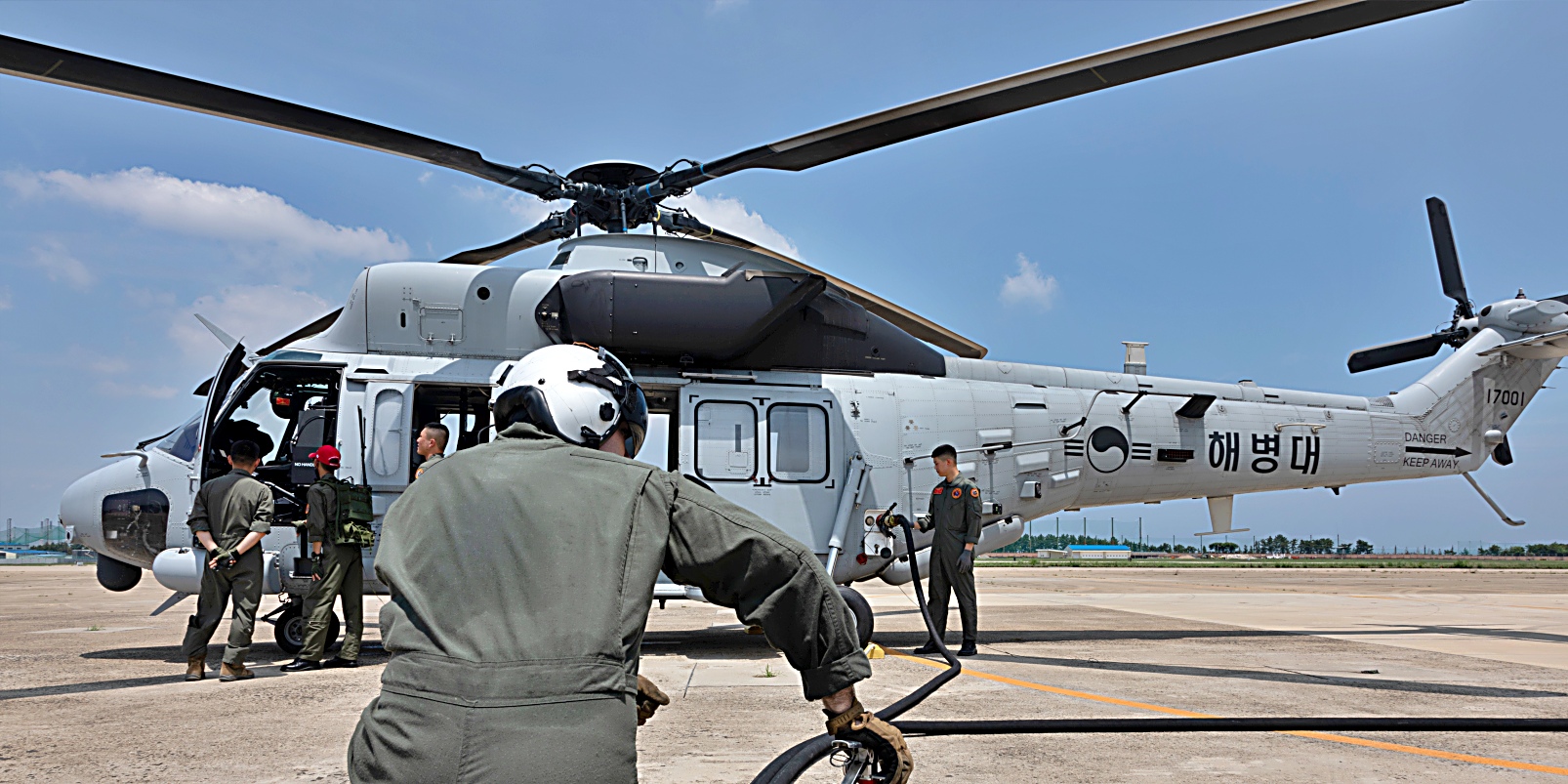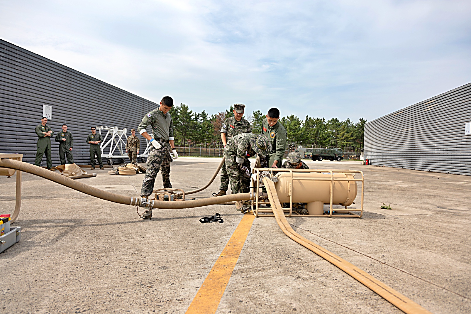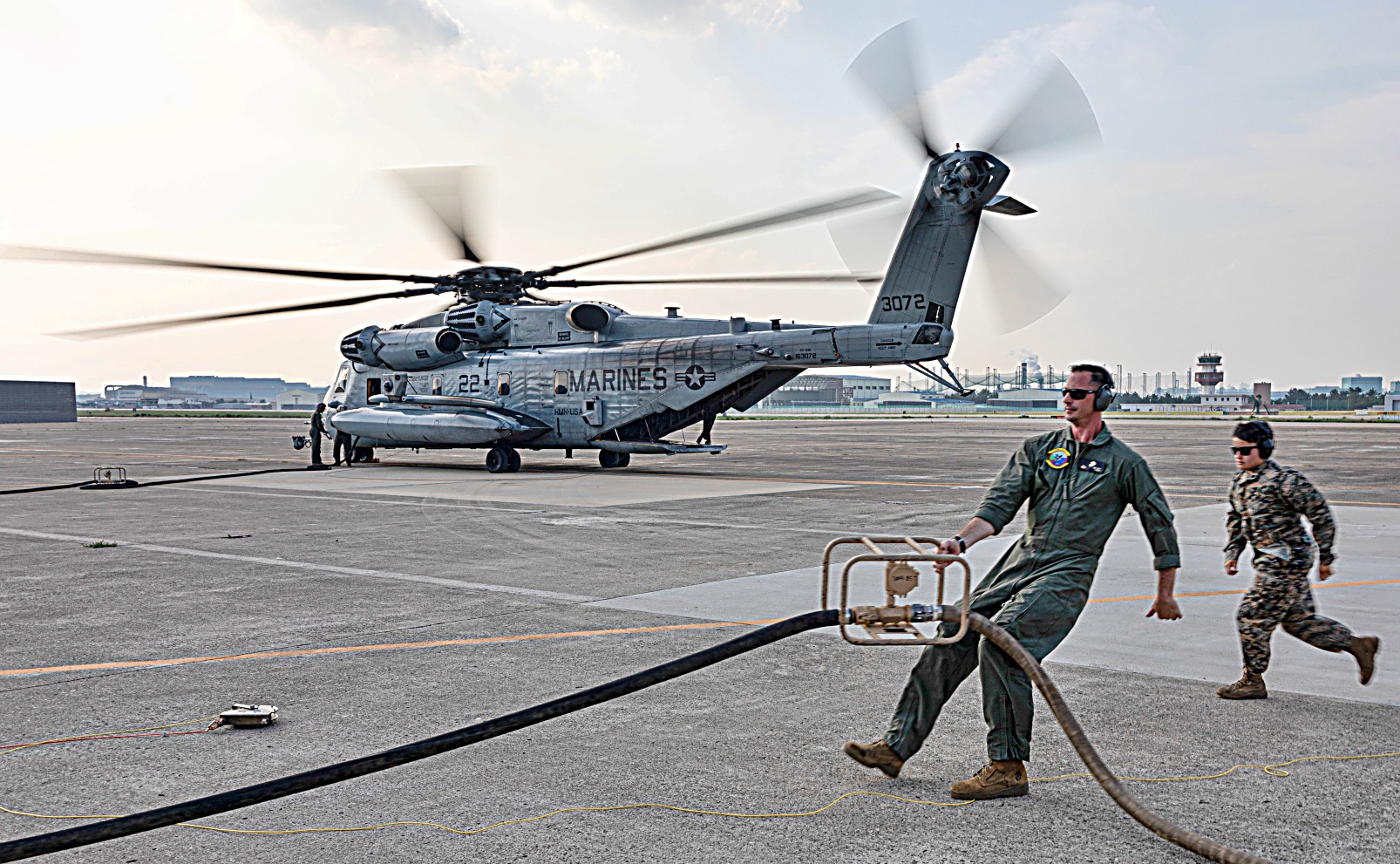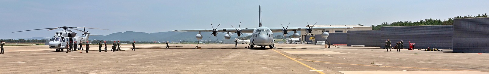 2022년 7월 20일, 포항 해군항공기지에서 미 해병대 KC-130J 슈퍼 허큘리스 수송기가 대한민국 MUH-1 마린온 헬리콥터에 재급유 훈련을 실시하고 있다. 이번 전방재급유 훈련(FARP)은 한국 해병대 훈련 프로그램 (Korean Marine Exercise Program)의 일환으로 다국적 훈련 및 대비 태세를 강화하기 위해 대한민국 해병대와 함께 실시됐다.
