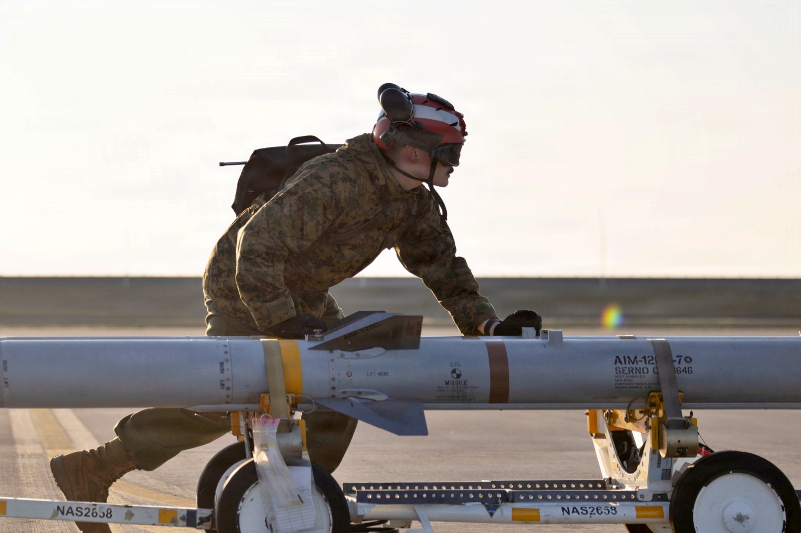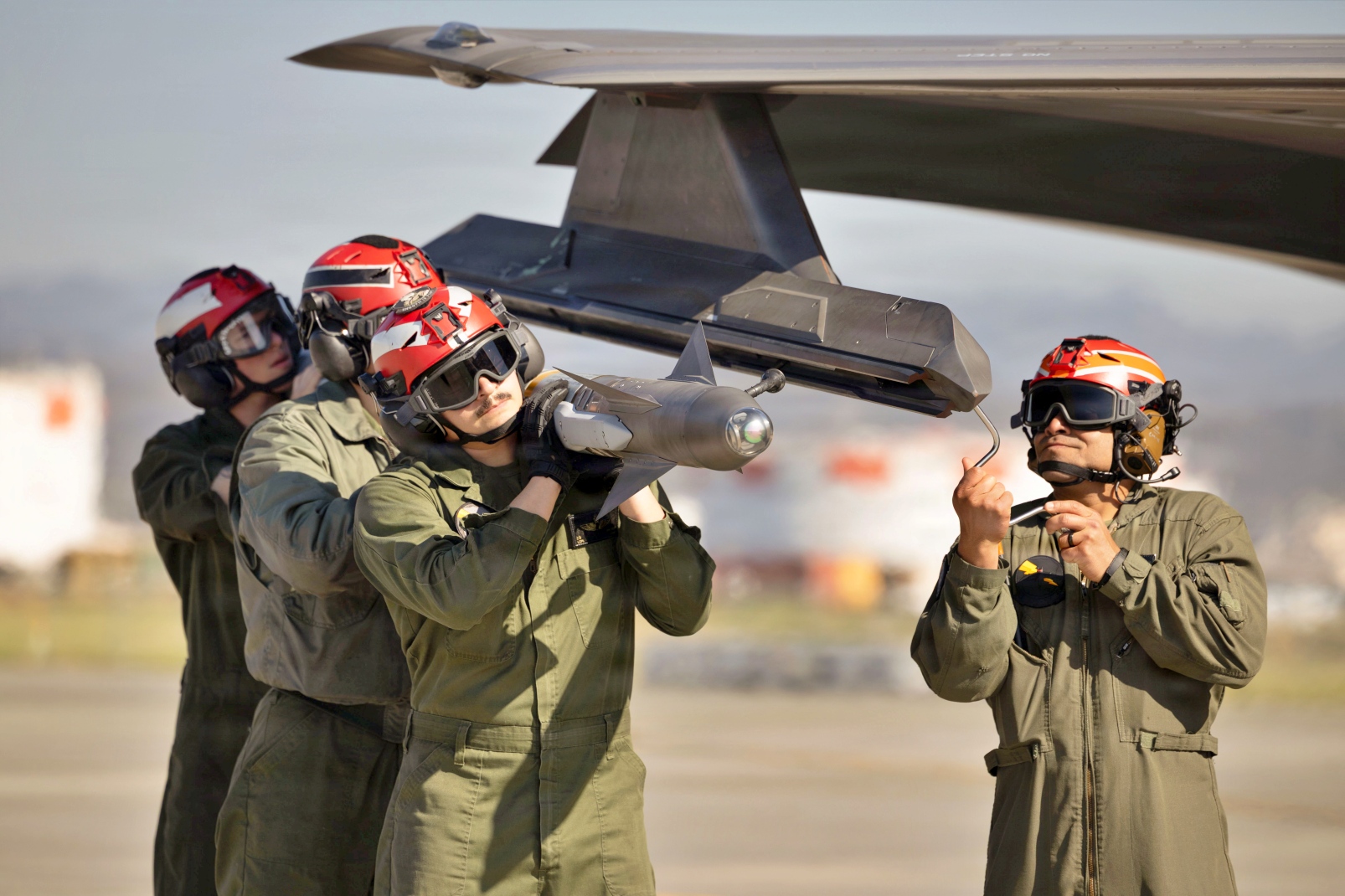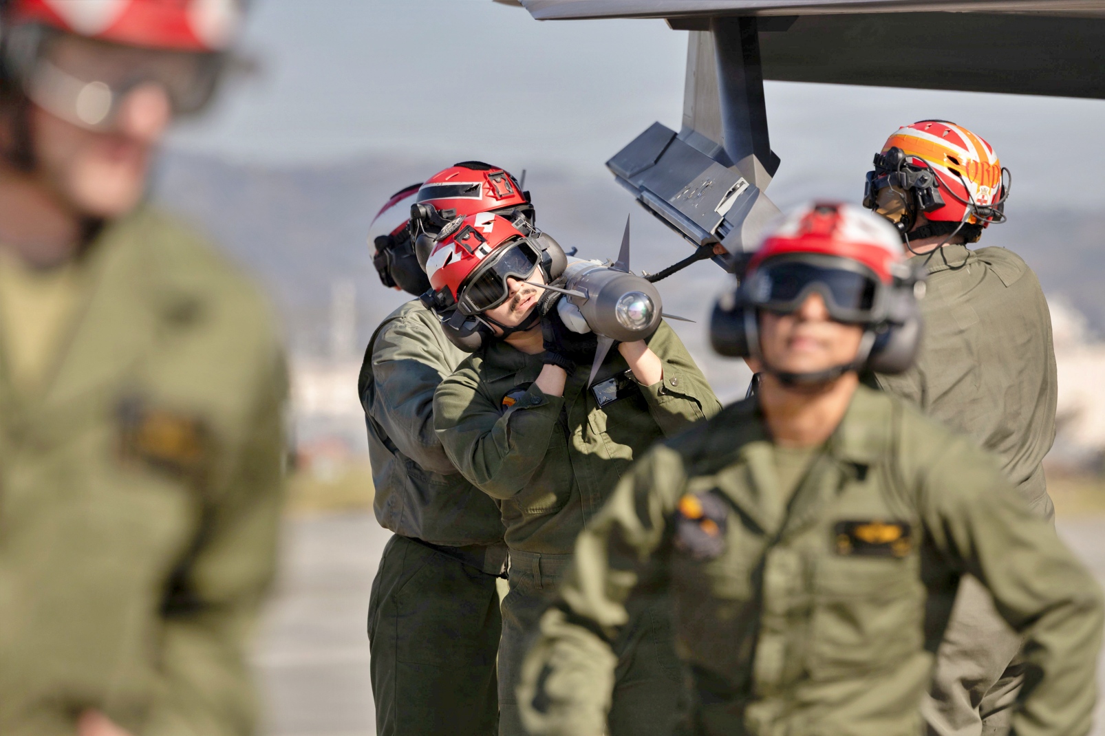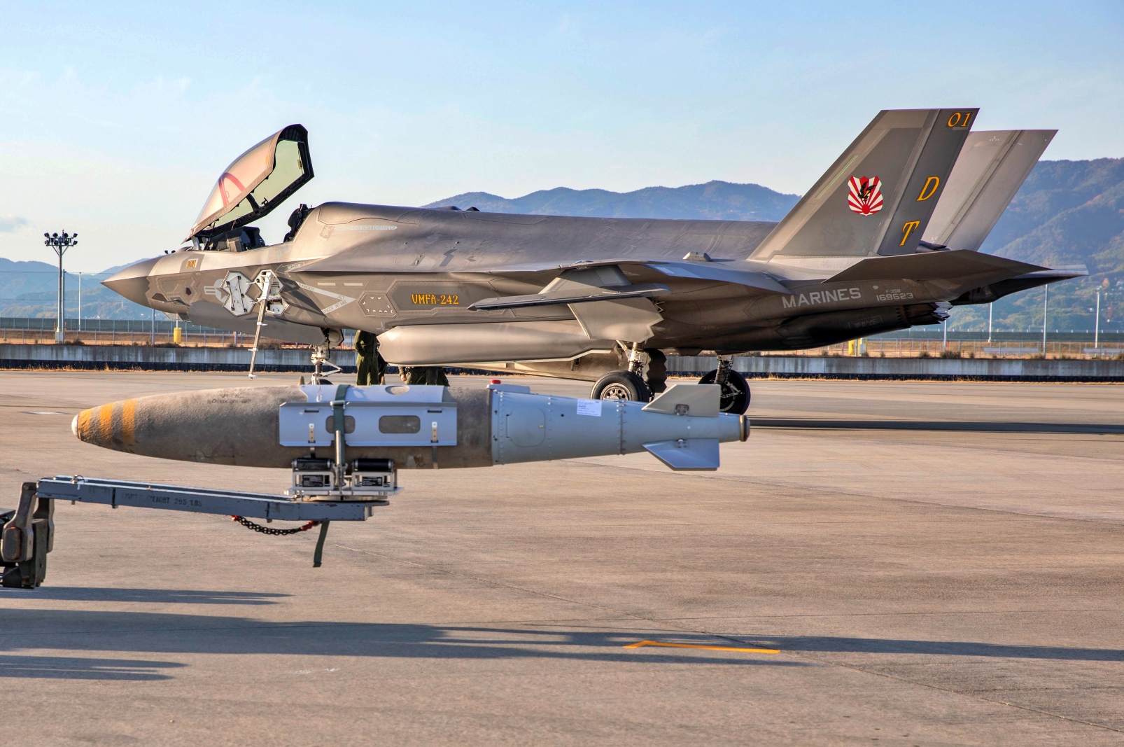 아래는 2022년 12월 12일, 일본 Iwakuni 해병항공기지에서 VMFA-242 소속 미 해병대원들이 F-35B 공격기에 실탄을 탑재하고 있다. VMFA-242가 실탄을 지상에서 탑재하지 않고 운용 중인 항공기에 실탄을 탑재하는 '핫 로딩' ( hot loading) 훈련을 실시한 것은 이번이 처음이다. 핫 로딩은 공중 작전 지원을 강화하고 지상 대기 시간을 줄이기 위해 운용 중인 항공기에 실탄을 탑재하는 훈련이다. VMFA-242는 전방 배치된 완전 작전형 5세대 스텔스 전투기 비행대대로서의 숙련도와 준비 태세를 유지하기 위해 일상적인 비행 작전을 수행했다.